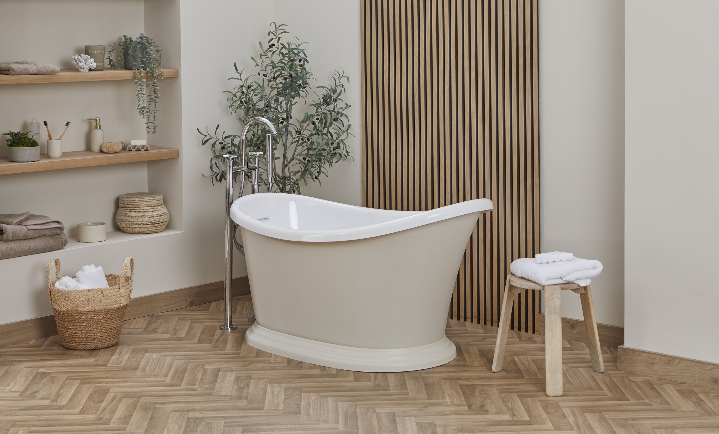 Bring refined luxury into your bathroom with the Woven Elegance of the Ingrid Freestanding bath. The striking basket-weave exterior offers a unique textural detail that sets this bath apart, creating a focal point of sophistication in any interior.