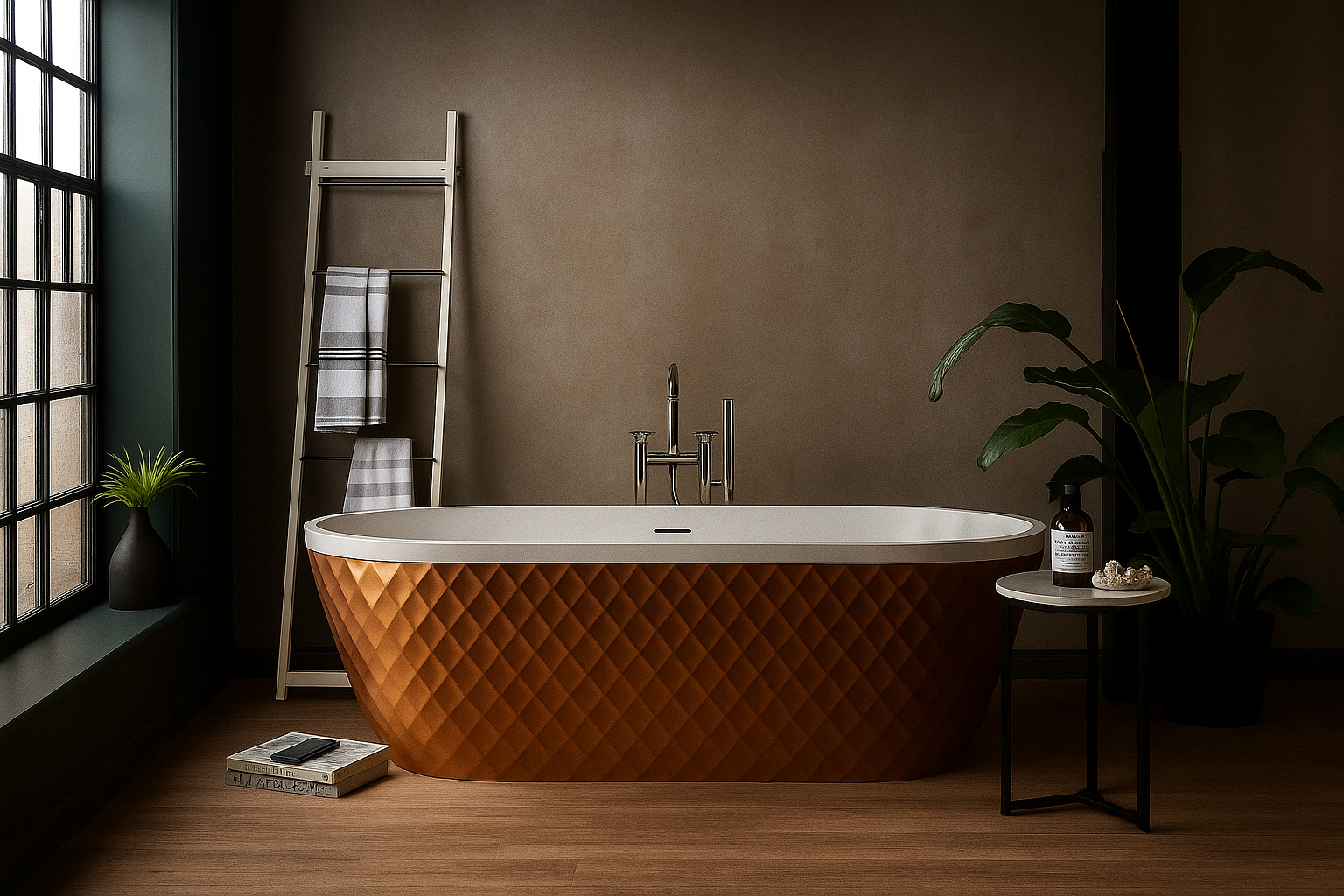 Elevate your bathroom with the sculptural elegance of the Faye freestanding bath. Featuring a striking diamond-textured exterior, this contemporary centrepiece blends artistic form with luxurious function. Its smooth, ergonomic interior invites deep relaxation, while the bold geometric pattern adds visual depth and sophistication.